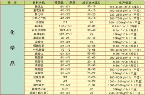 PBF型帶式真空過濾機典型應(yīng)用實例表: